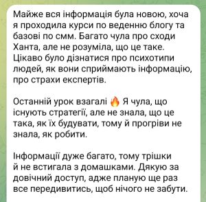Я не люблю масовість, тому працювати будемо в невеликій групі, щоб я кожному учаснику дала якісний зворотний зв’язок.